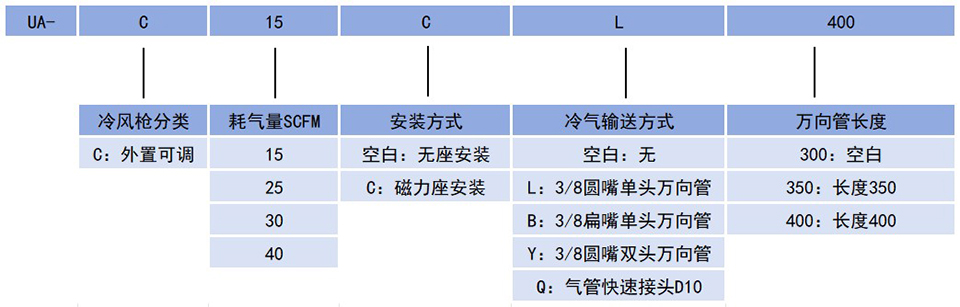 YOUAIR冷卻槍系統(tǒng)為各種工業(yè)局部冷卻問(wèn)題提供低成本、可靠、免維護(hù)的解決方案,冷風(fēng)槍使用渦流管技術(shù)將壓縮空氣產(chǎn)生低至-34 ℃(-50 ℃溫降)的低溫冷空氣,適用于眾多工業(yè)局部冷卻應(yīng)用。由于沒有會(huì)磨損的活動(dòng)部件,可免維護(hù)運(yùn)行,冷風(fēng)槍不需要電力,只需要壓縮空氣源,耗氣量范圍為 15 SCFM 至 40 SCFM。冷卻槍使用非常方便,它的永磁體基座方便安裝可置放于任何位置,用于冷氣輸送的萬(wàn)向軟管(單頭和雙頭)靈活的彎曲性可以把冷氣流送到需要冷卻的任何位置。