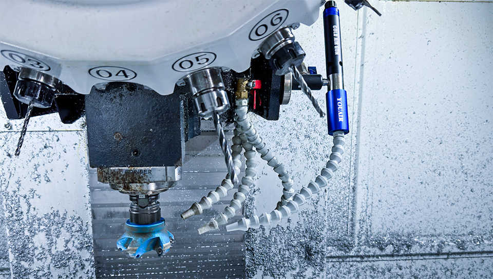 冷風(fēng)槍常用于金屬零件的冷卻,用于金屬、塑料、木材、陶瓷和其他材料的加工和打磨。冷空氣加工優(yōu)于噴霧冷卻劑,并顯著提高刀具壽命和干式加工操作的進(jìn)給率。冷風(fēng)槍的有效冷卻可以消除與熱相關(guān)的零件增長,同時提高零件公差和表面光潔度質(zhì)量。冷風(fēng)槍具有可調(diào)節(jié)的溫度和流量設(shè)置;有些型號有一個無霜噴嘴,以消除霜和冷凝造成的混亂。